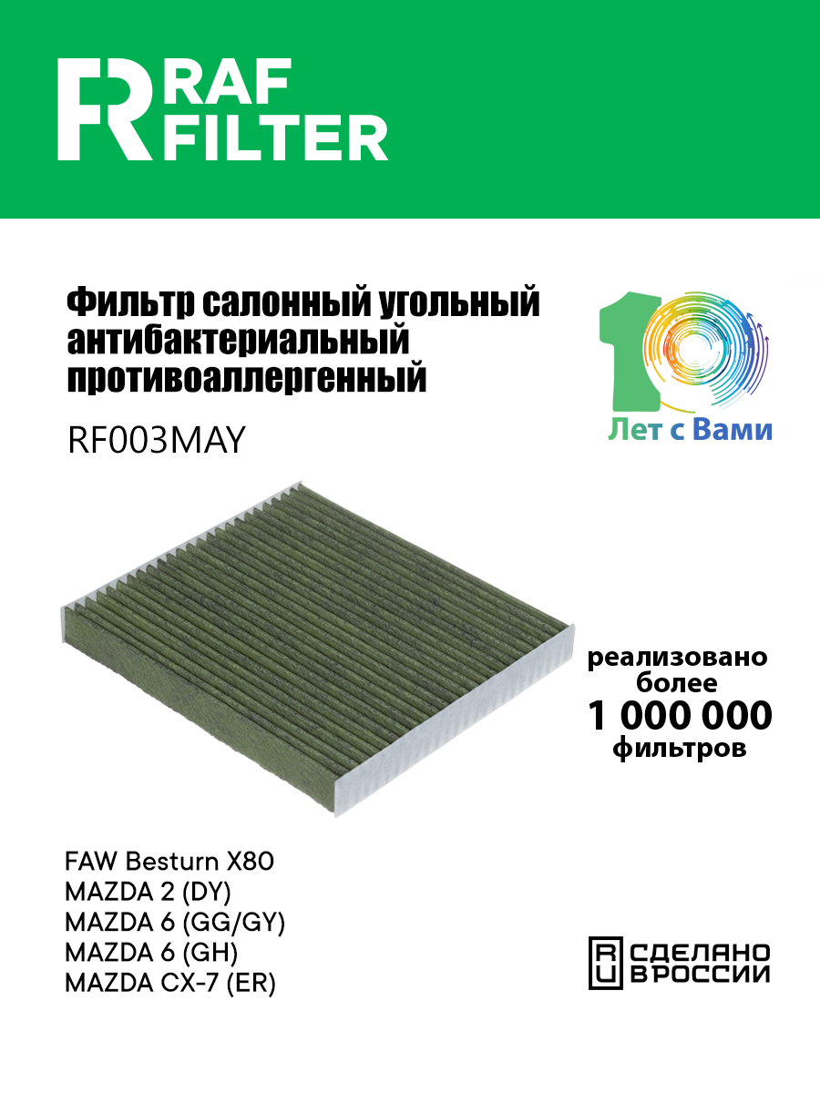 RF003MAY RAF FILTER Фильтр воздушный салона MAZDA 2,6,CX-7 угольный антиаллерг. RAF FILTER