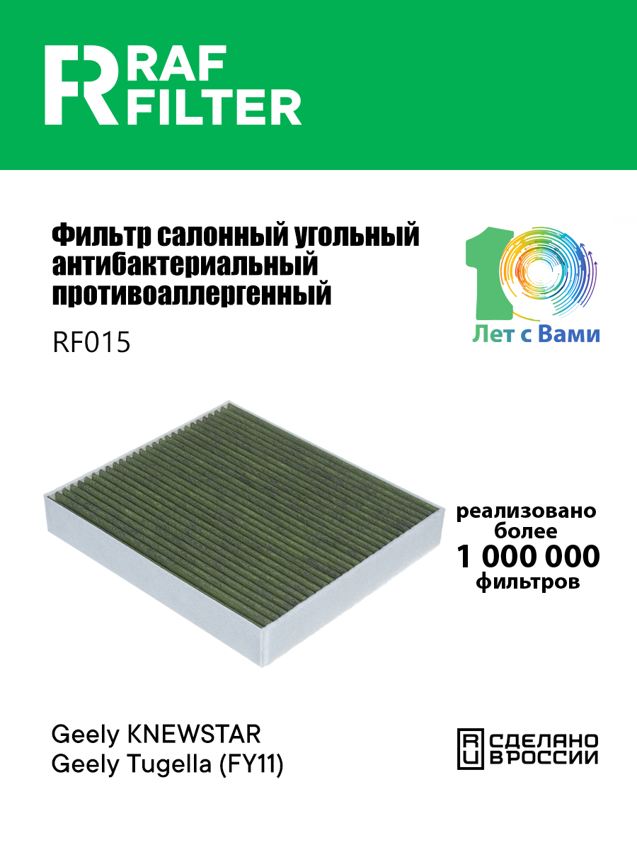 RF015 RAF FILTER Фильтр воздушный салона GEELY Tugella (FY11) угольный антиаллергенный RAF FILTER