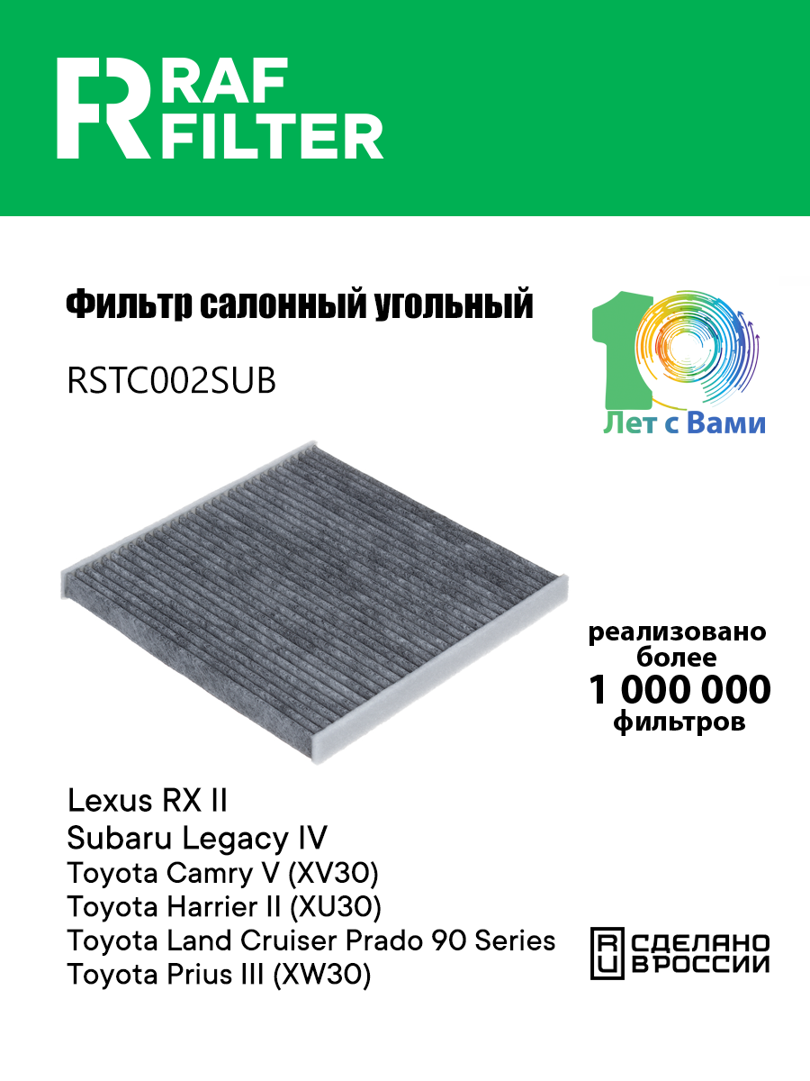RSTC002SUB RAF FILTER Фильтр воздушный салона TOYOTA Camry (01-) LEXUS RX (03-) SUBARU Legacy (03-) уг