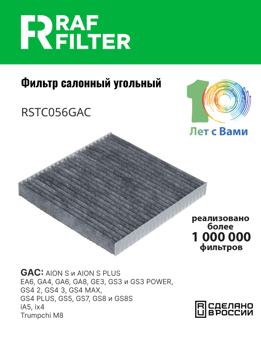 RSTC056GAC RAF FILTER Фильтр воздушный салона GAC угольный RAF FILTER