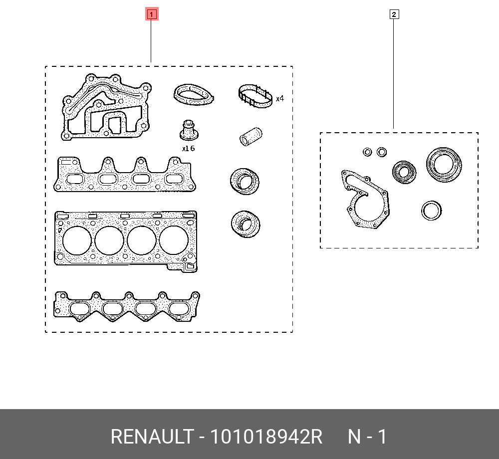 101018942R RENAULT КОМПЛ ПРОКЛАДОК ГБЦ 24 ШТ 101018942R