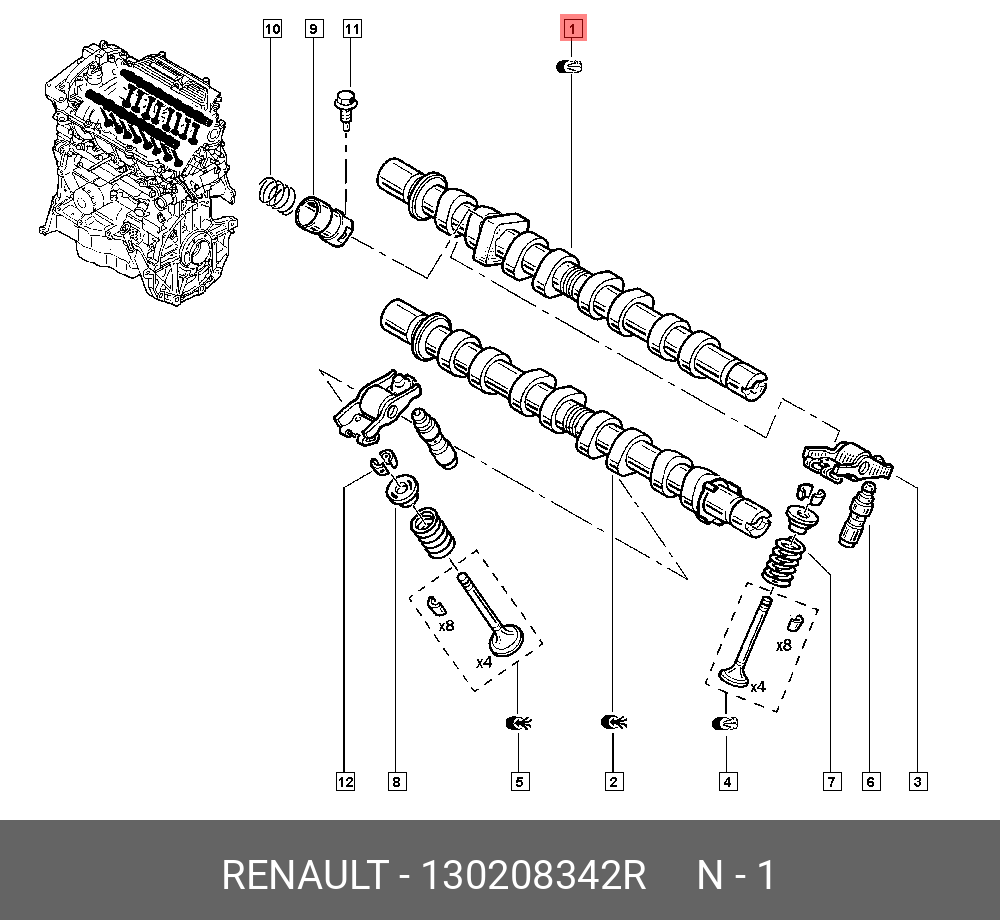 130208342R RENAULT Вал распределительный RENAULT OE