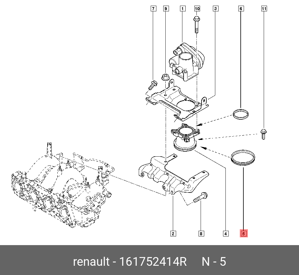161752414R RENAULT Прокладка RENAULT (дв.K7M) заслонки дроссельной OE