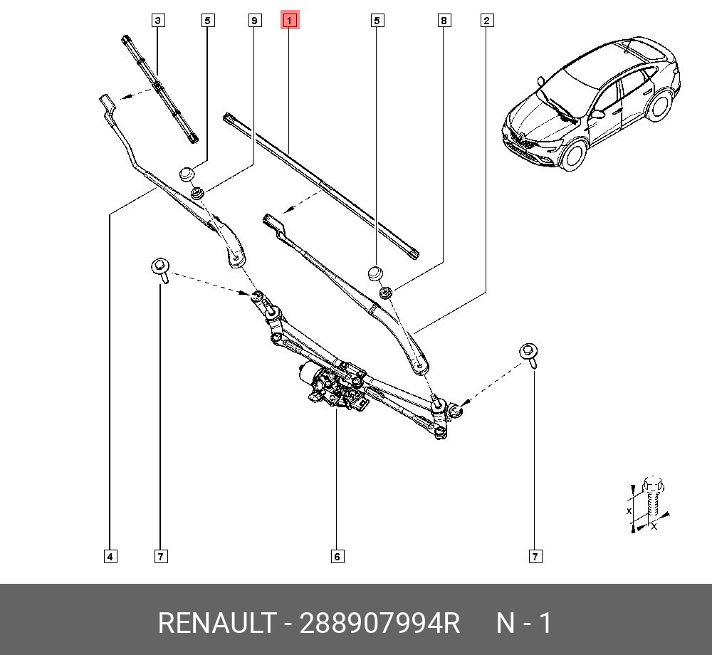 288907994R RENAULT ЩЕТКА СТЕКЛООЧИСТИТЕЛЯ ВОД 288907994R