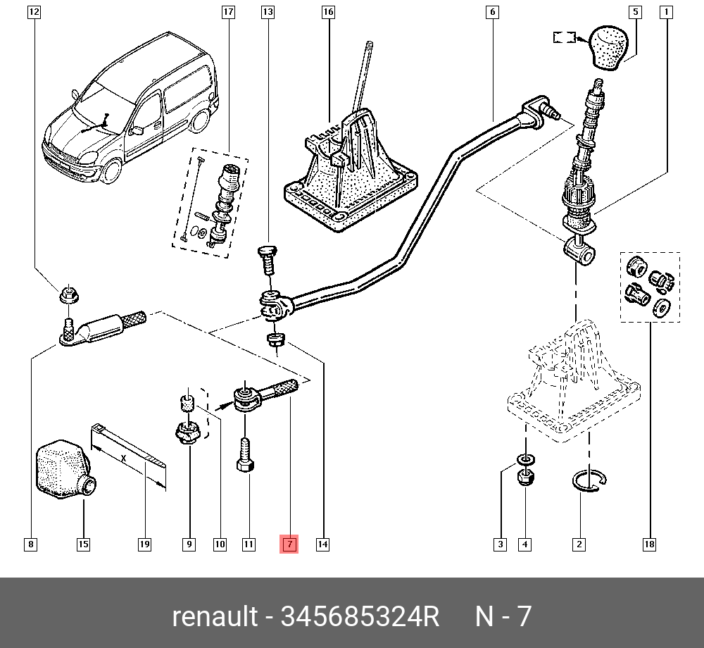 345685324R RENAULT наконечник тяги преключ передач!\ Renault Twingo