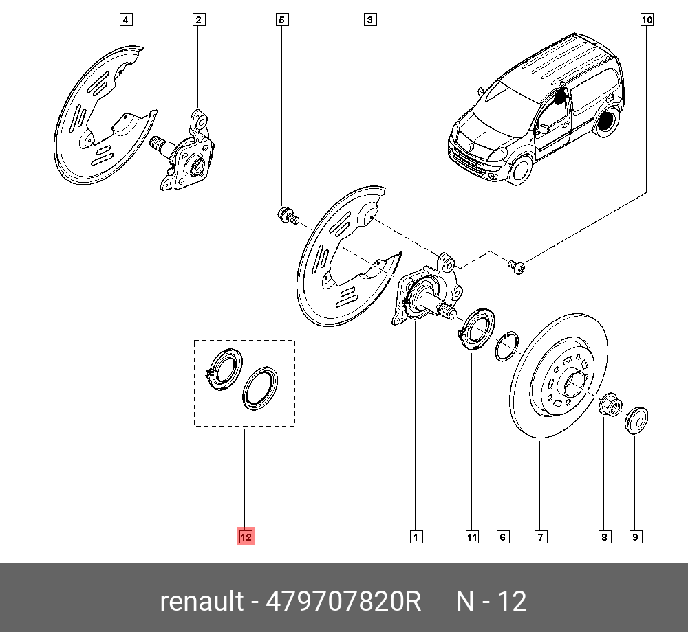 479707820R RENAULT к-кт кольцо магнитное, кронштейн датч. ABS зад!\ Renault Kangoo 1.6i 07>