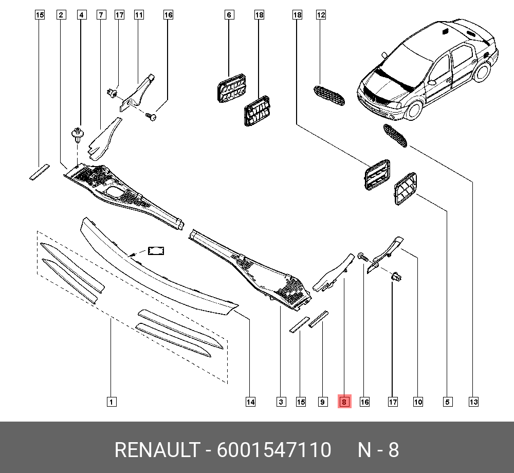6001547110 RENAULT Заглушка RENAULT Logan,Sandero кузова OE