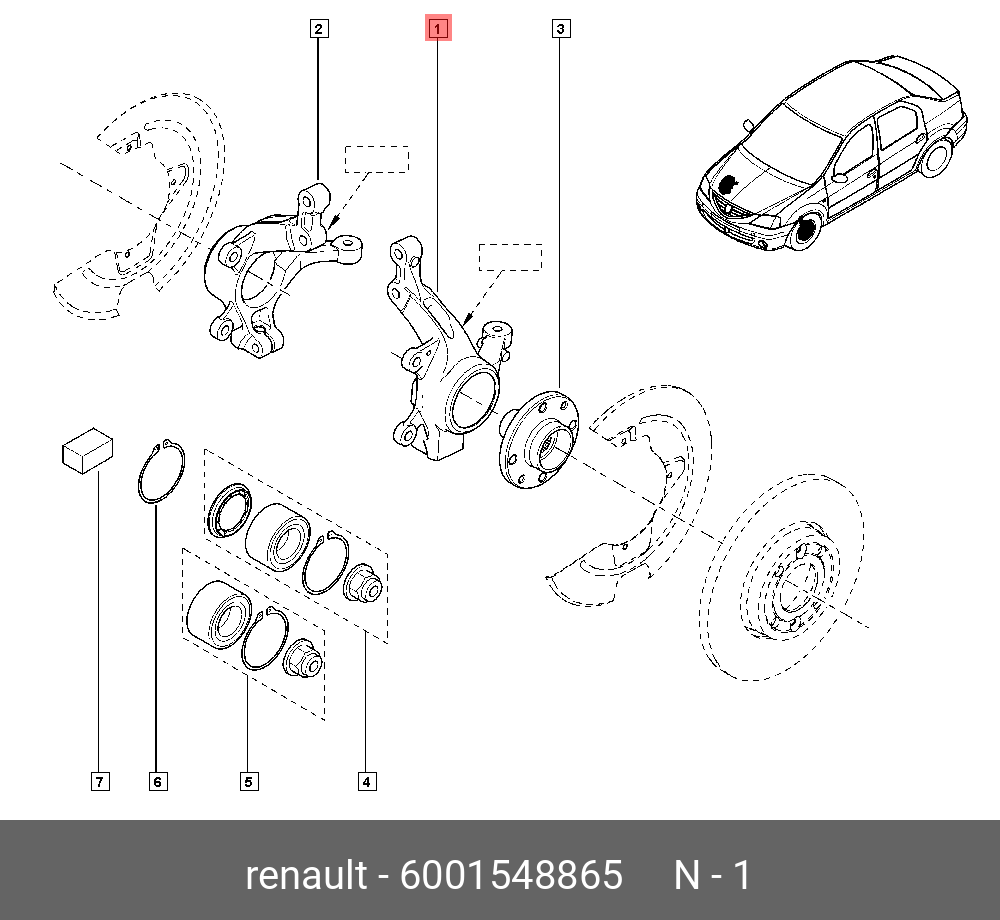 6001548865 RENAULT кулак поворотный левый! с ABS\ Renault Logan/Sandero 1.4/1.6/1.5dCi 04>