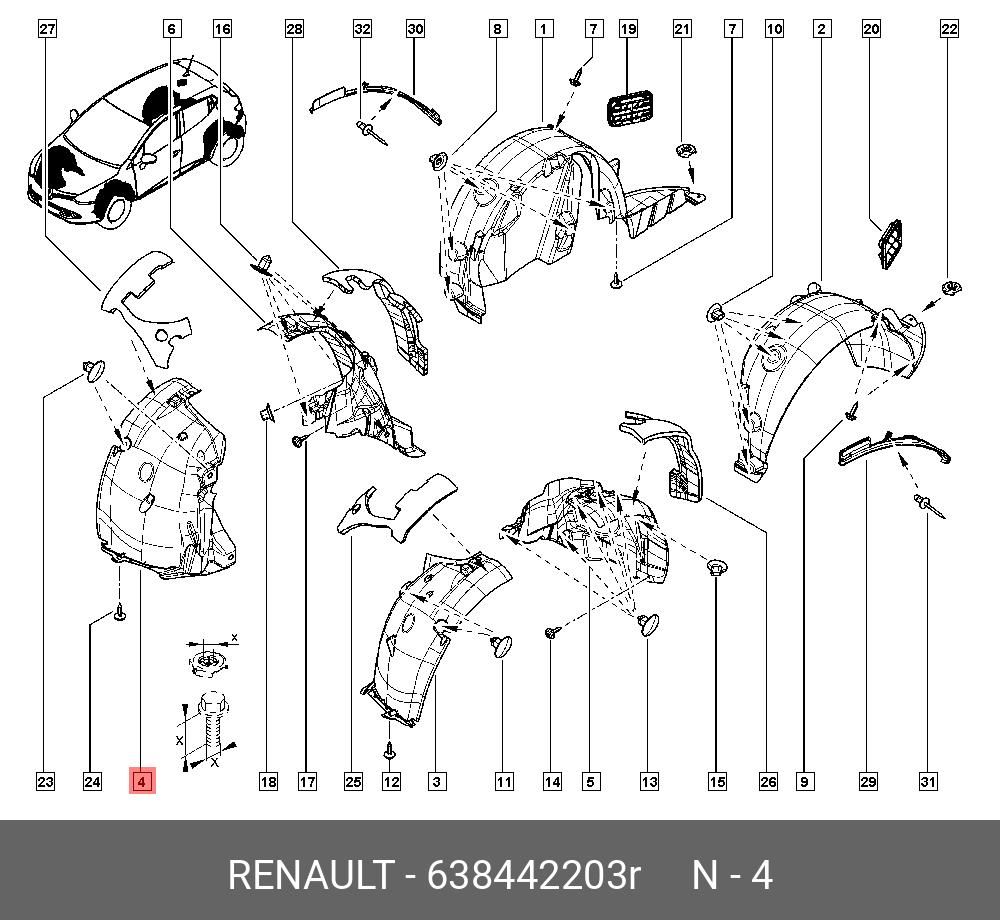 | Наименование | Подкрылок передний правый Clio 4 |