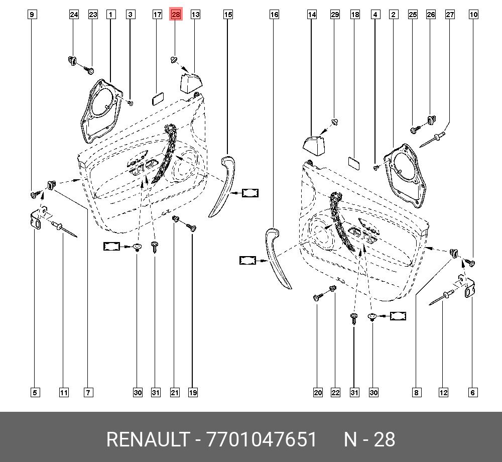 7701047651 RENAULT клипса заглушки двери!\ Renault