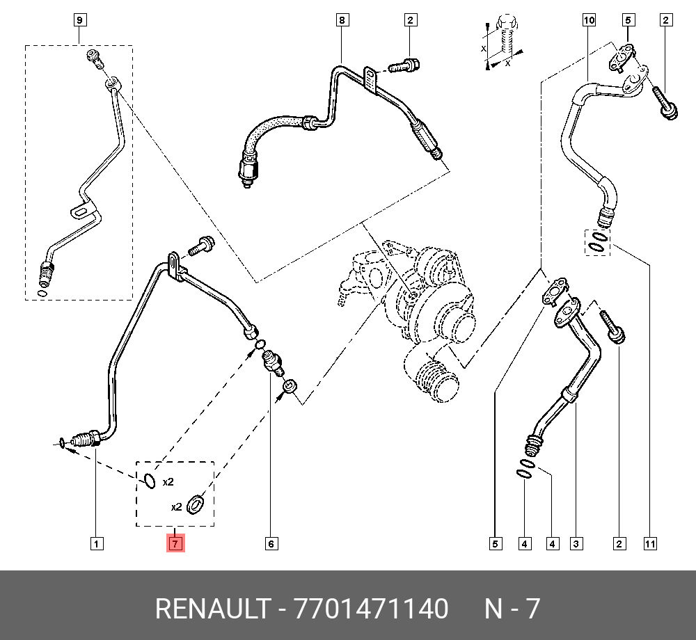 7701471140 RENAULT к-кт колец уплотнительных! 2шт.рез.,2шт.мет.\ Renault Laguna/Master/Megane