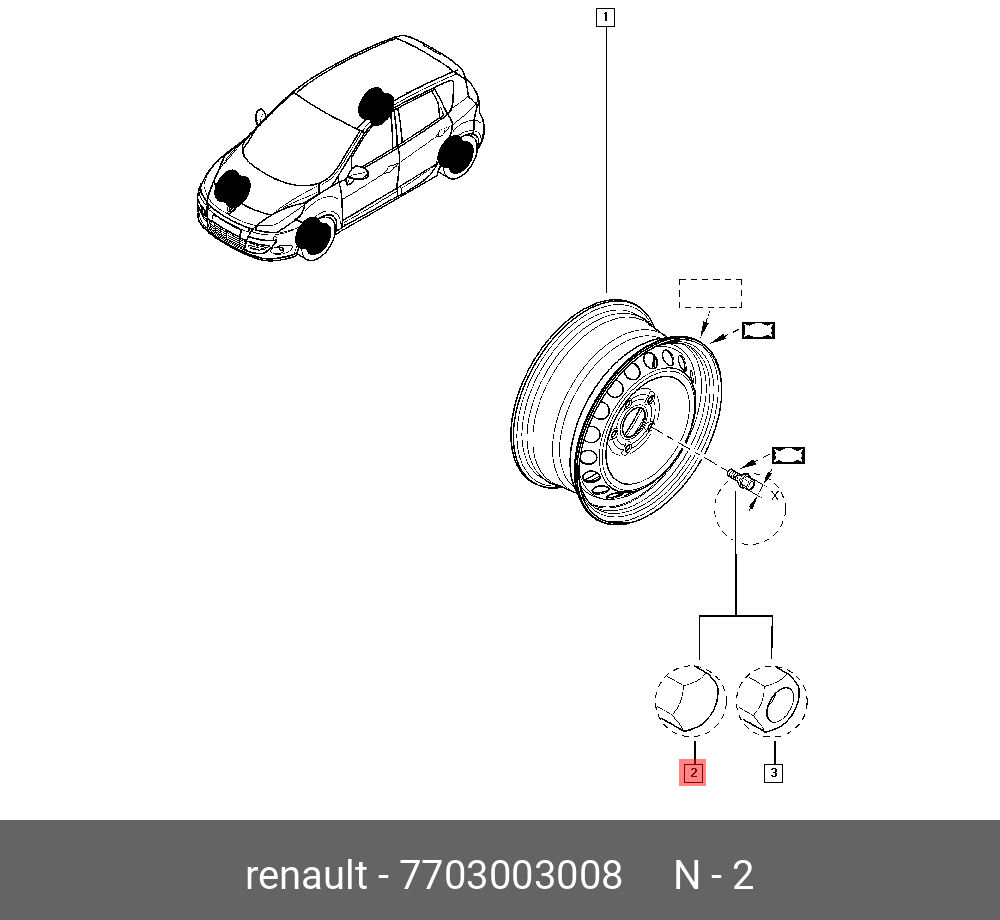 7703003008 RENAULT Болт колеса RENAULT Kaptur OE