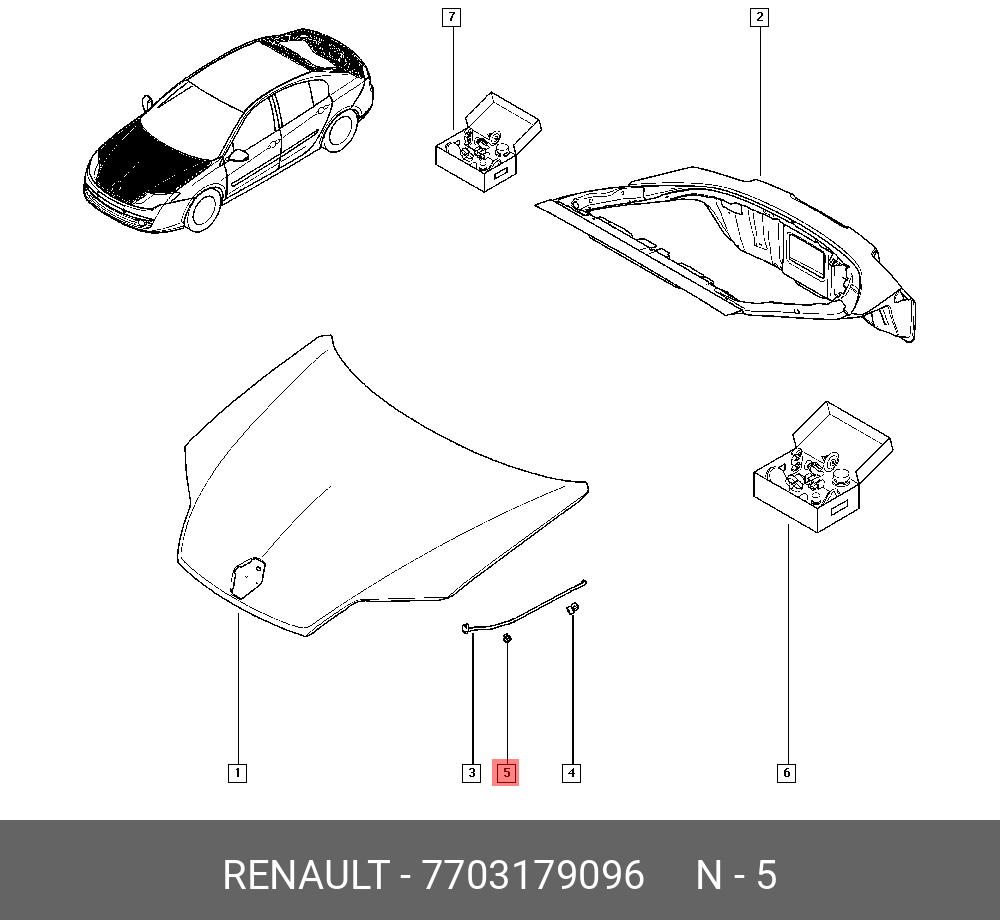| Наименование | Фиксатор опоры капота RENAULT Laguna III RENAULT 7703 179 096 |