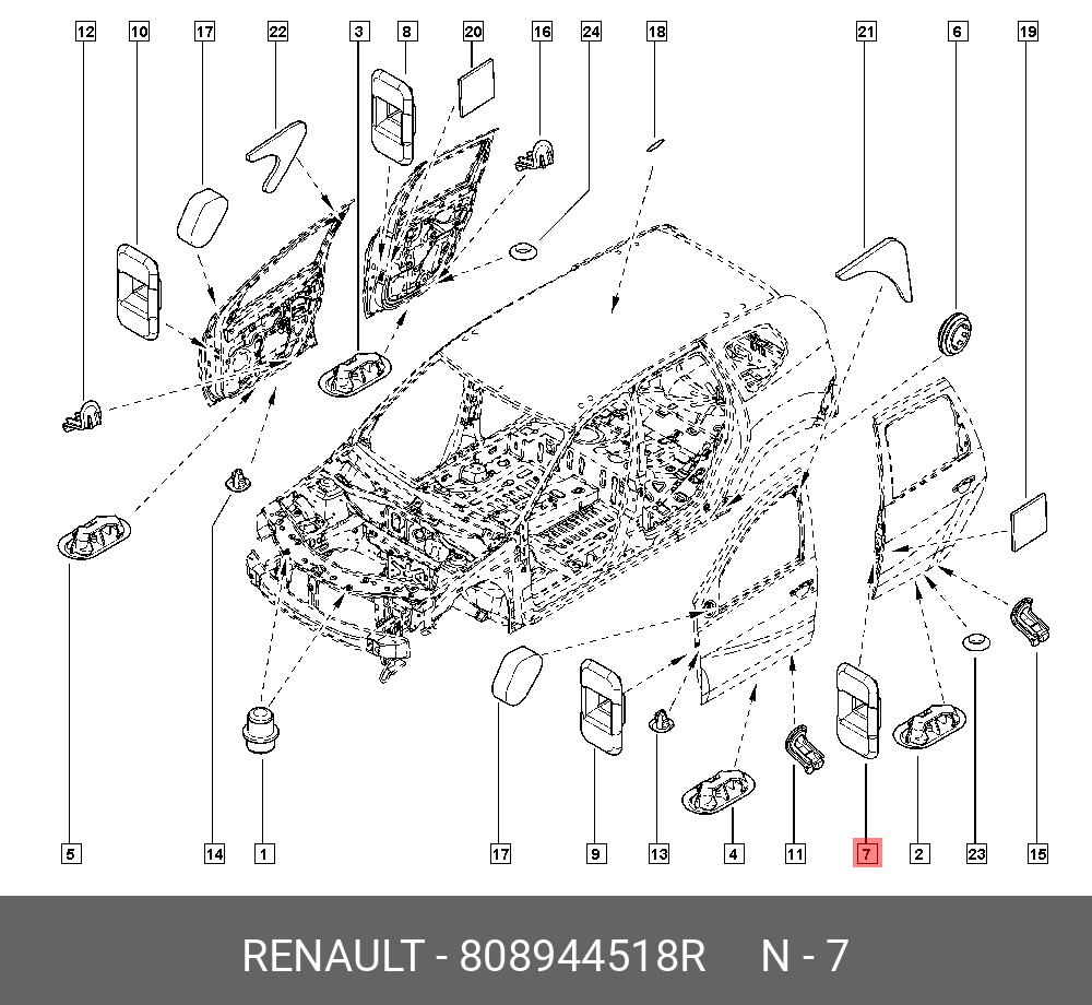 808944518R RENAULT заглушка ограничителя двери!\ Renault Logan/Duster 1.4/1.6/1.5dCi 04>