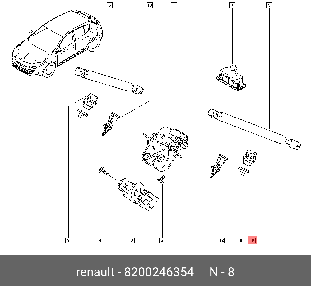 | Наименование | 8200246354 RENAULT Упор (отбойник) багажника Megane 3 2009>, Fluence 2010>,Duste |