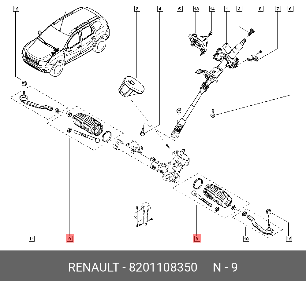 82 01 108 350 RENAULT КОМП. ТЯГИ РУЛЕВОЙ 8201108350