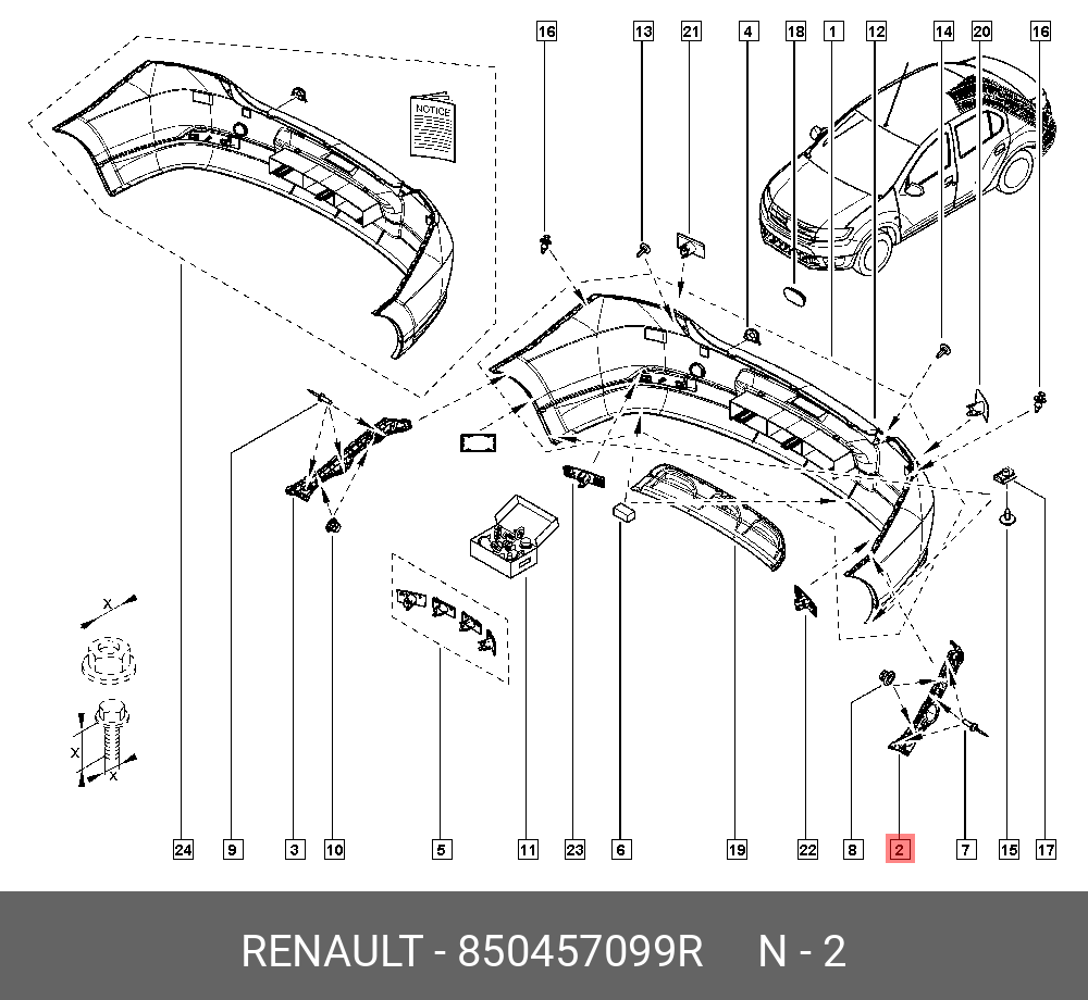 850457099R RENAULT Кронштейн бампера RENAULT Logan заднего левый OE