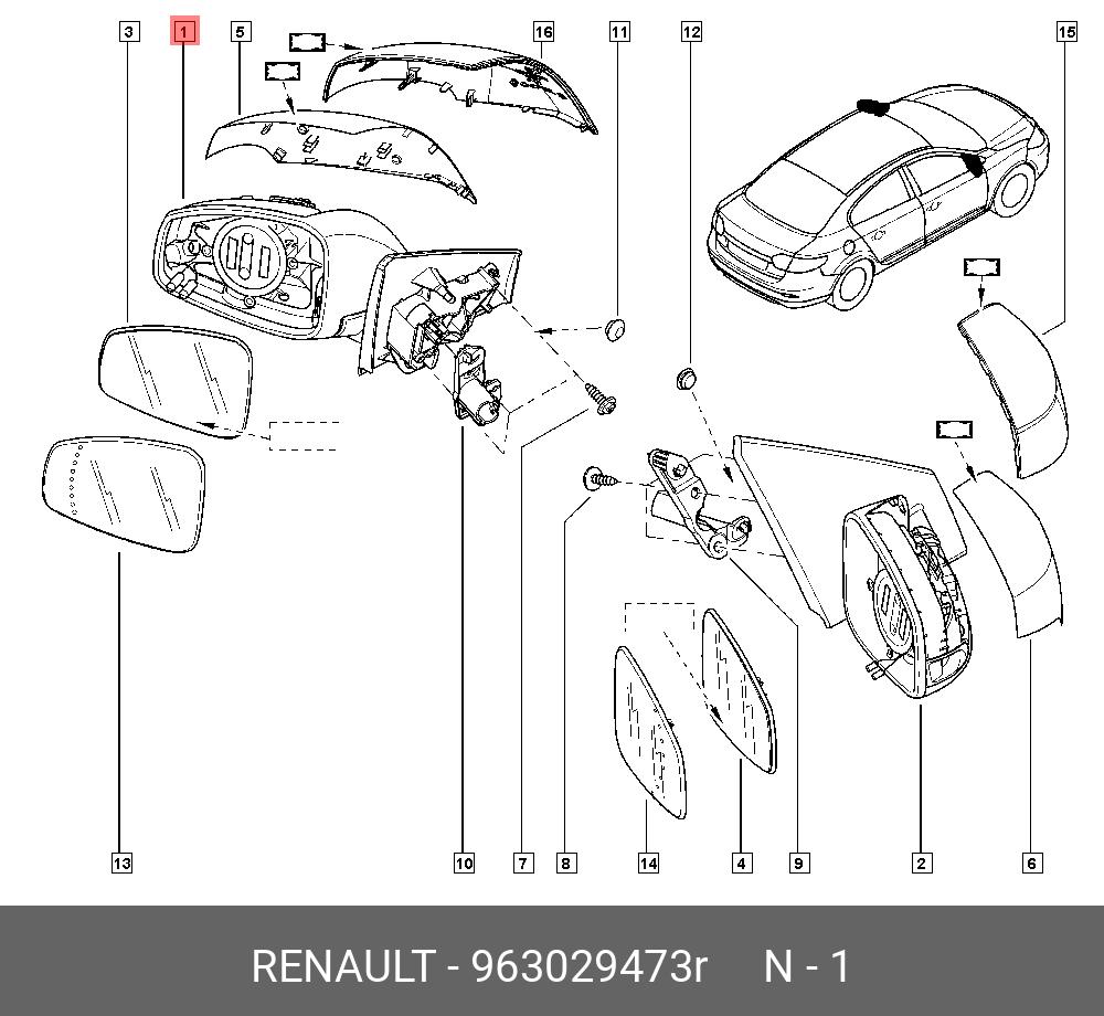 963029473R RENAULT КОРПУС ЗЕРКАЛА ЛЕВ. (ПЛАС)