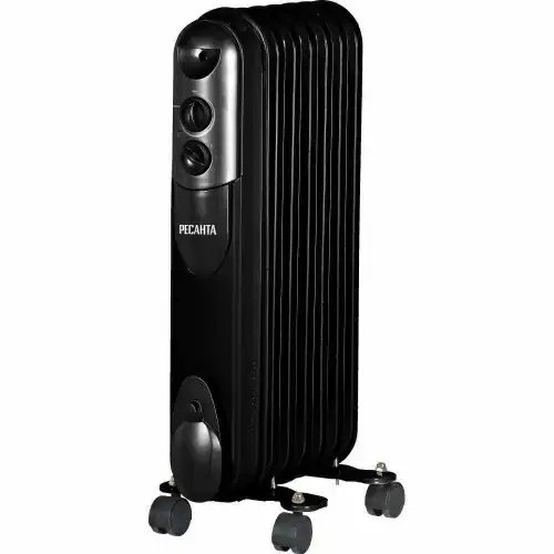 | Наименование | Обогреватель радиатор масляный 1.50кВт (15кв.м) 7 секций черный РЕСАНТА |