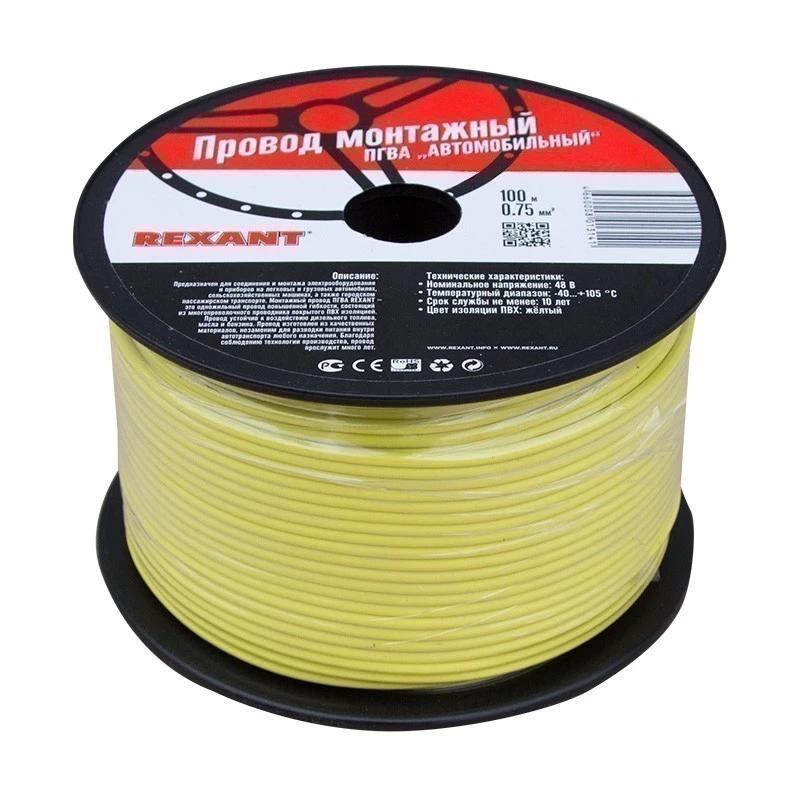 016502 REXANT провод ПГВА 1х0.75 мм квадр., желтый, бухта 100м\