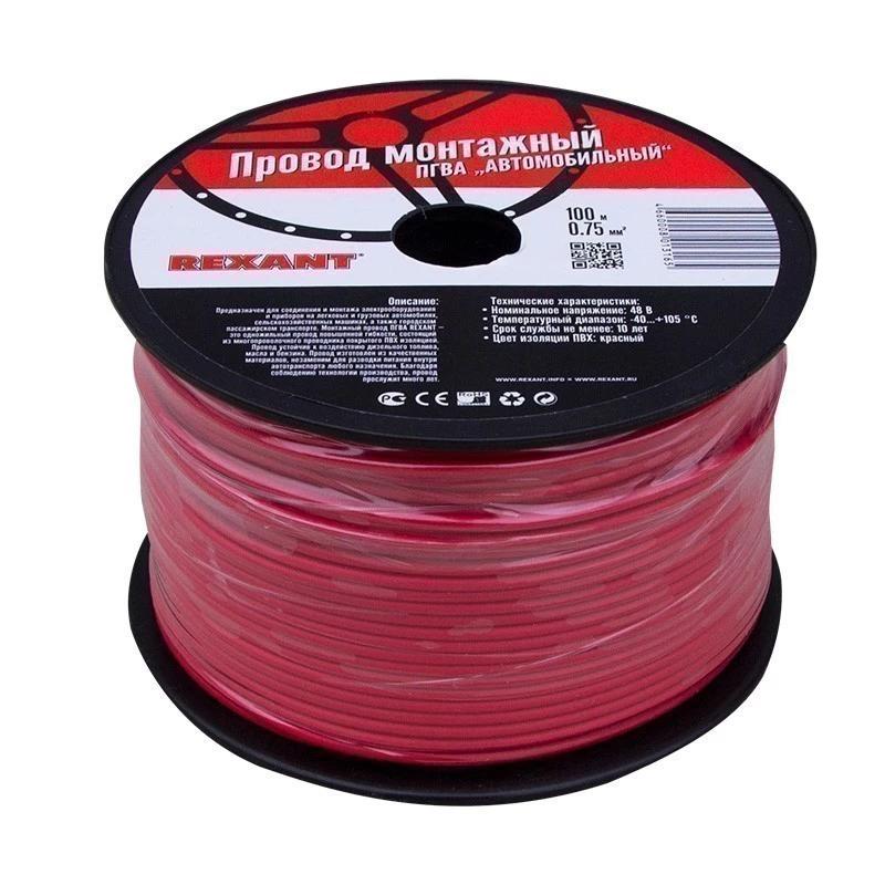 016504 REXANT провод! ПГВА1х0.75мм2, красный, бухта 100м\