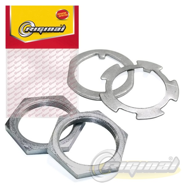 | Наименование | Гайка ступицы для а/м УАЗ "Riginal" (гайка 2 шт, шайба стопорная, замочная) |