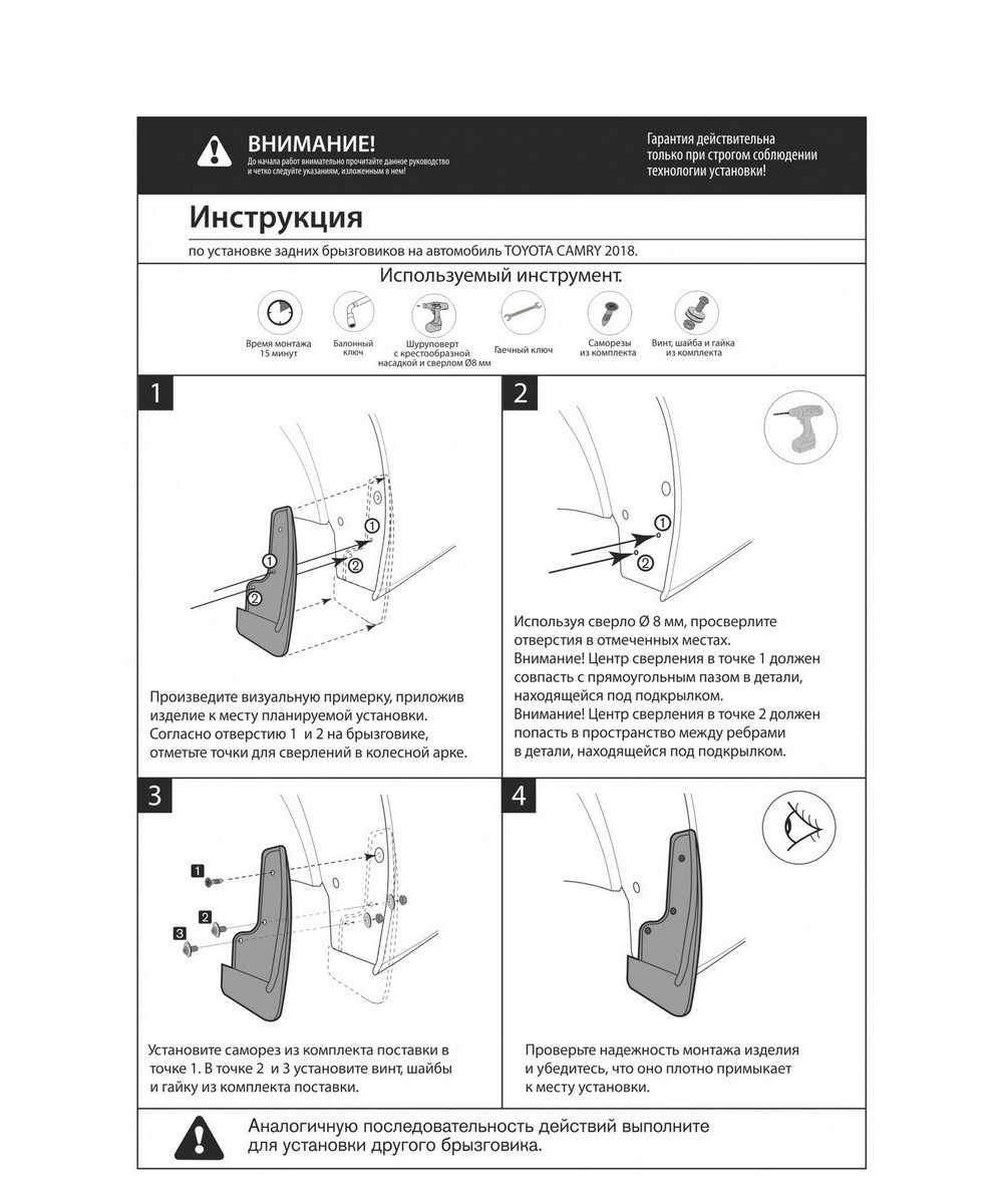 | Наименование | брызговики задние! термоэластопласт\ Toyota Camry XV70 седан 18> |