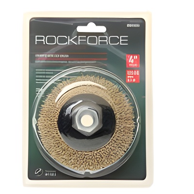 | Наименование | Кордщетка для УШМ "чашка" 100мм витая латунь в блистере ROCKFORCE |