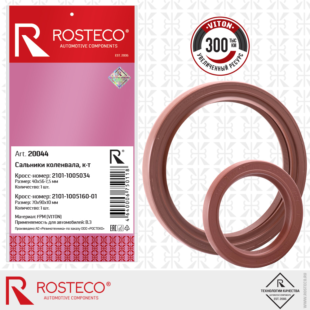 20044 ROSTECO Сальник коленвала для а/м ВАЗ 2101 (комплект) "Rosteco"