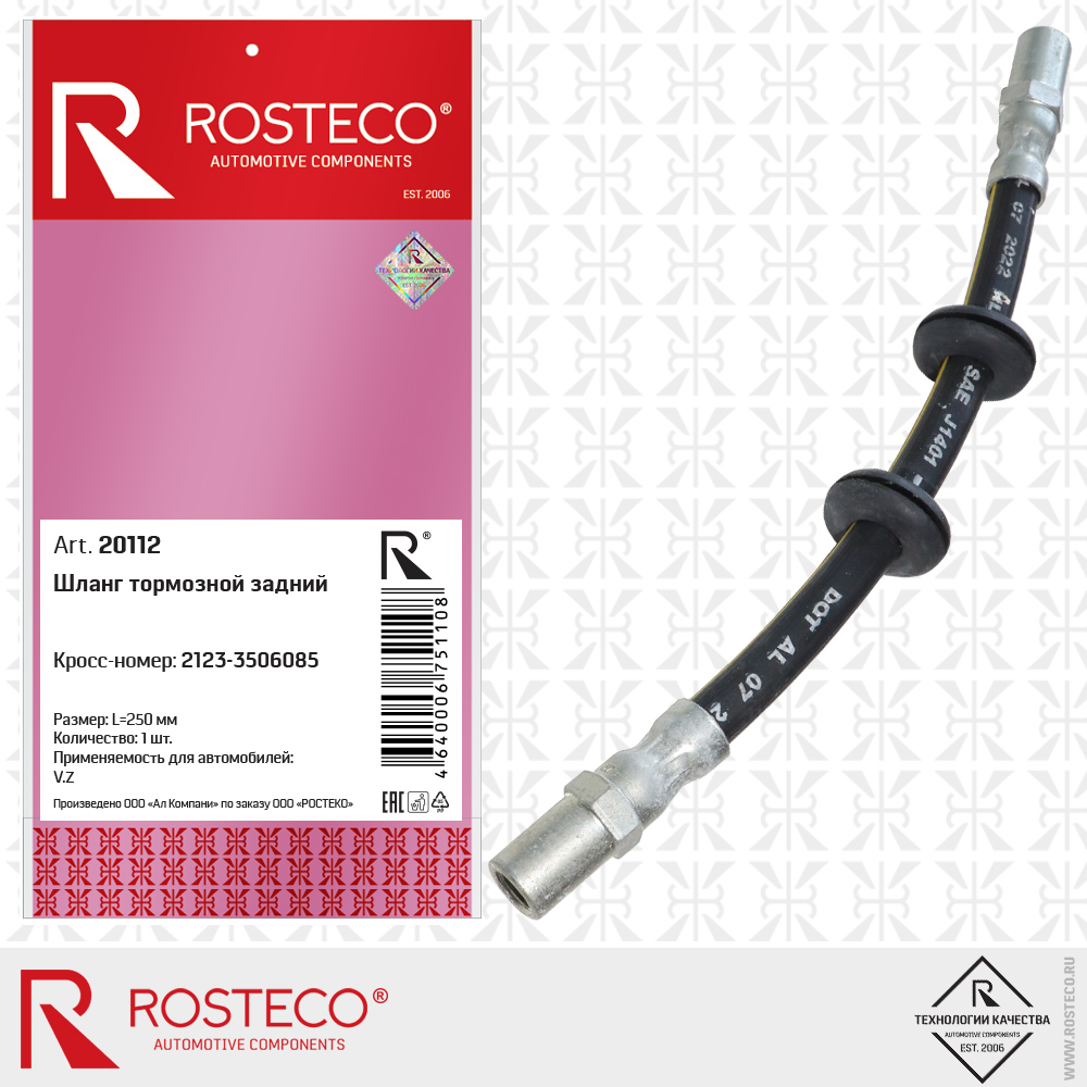 20112 ROSTECO Шланг тормозной задний для а/м ВАЗ 2123 Rosteco