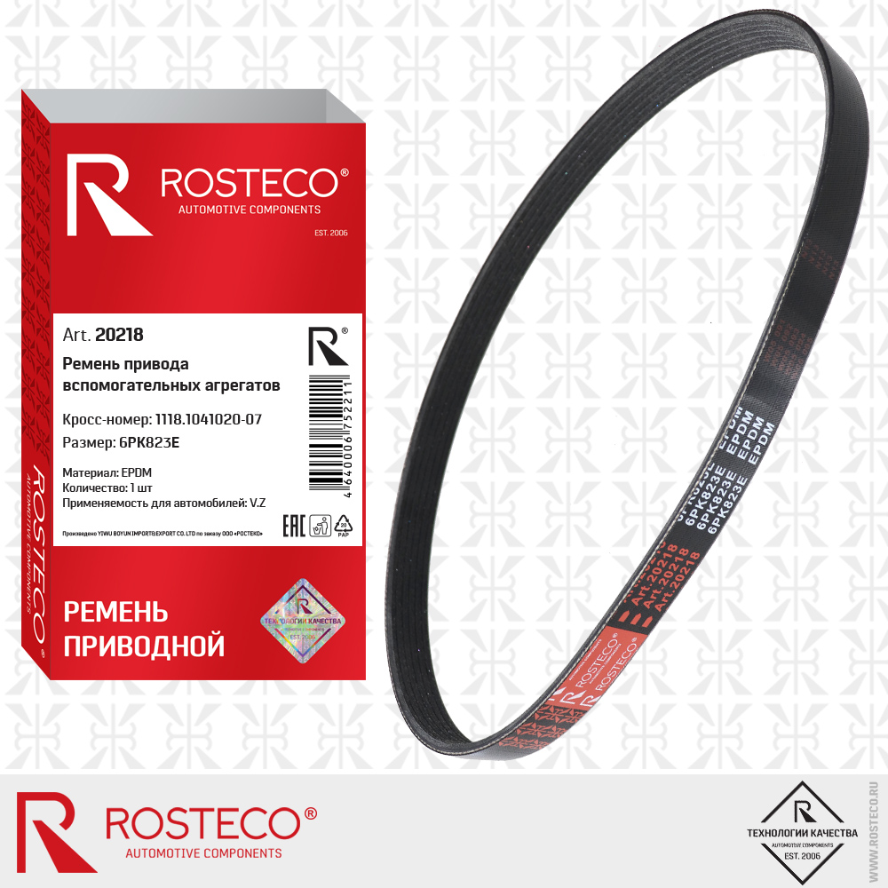 20218 ROSTECO Ремень генератора для а/м ВАЗ 2190 (6PK825) "Rosteco"