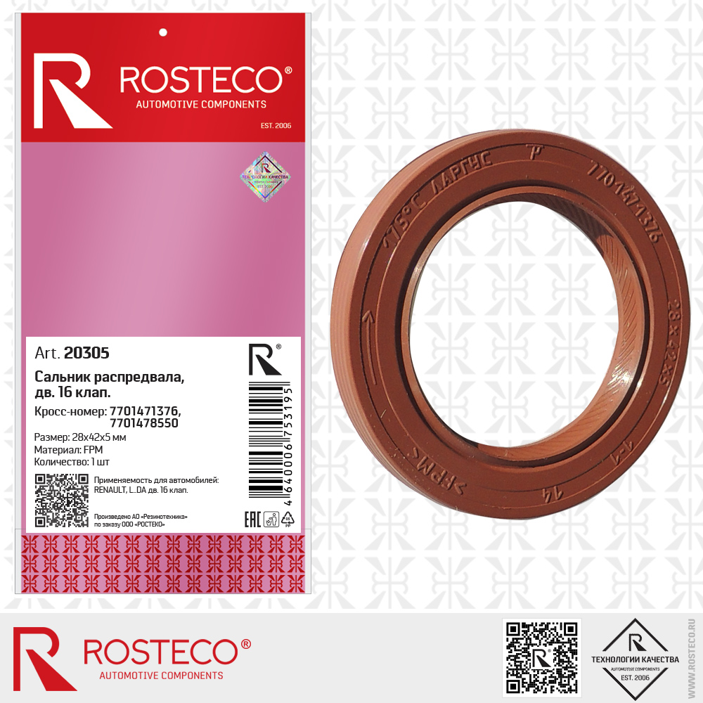 20305 ROSTECO Сальник распредвала для а/м Lada Largus, Renault Logan 16 клап. Rosteco FPM