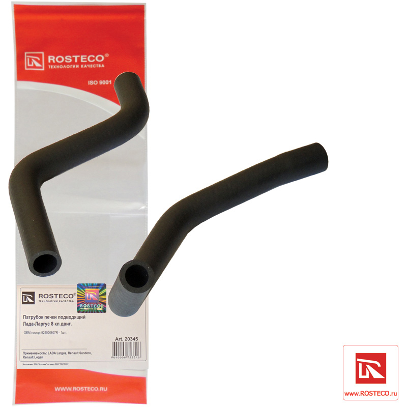 20345 ROSTECO Патрубок печки подводящий Largus, Logan (к-т 2 шт.) 20345