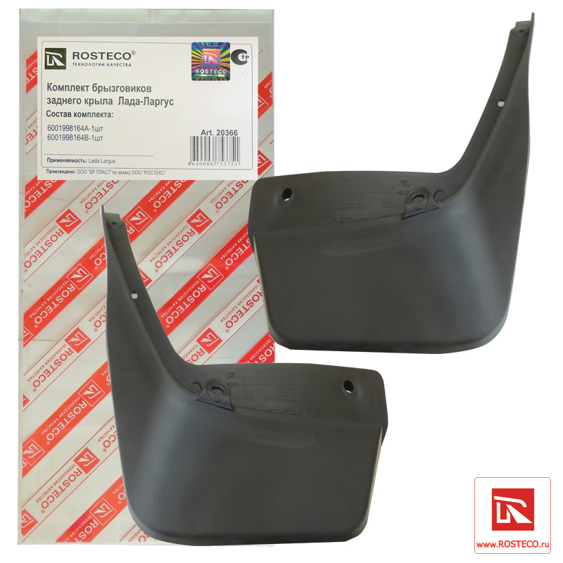 20366 ROSTECO Брызговики задние для а/м Lada Largus, Renault Logan (2 шт.) Rosteco увеличенные