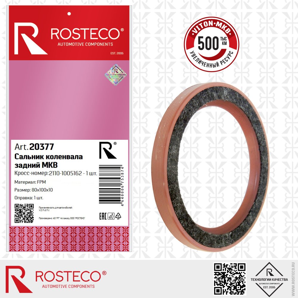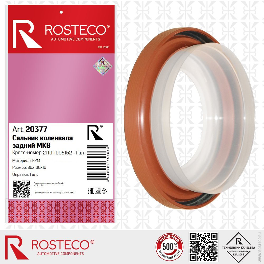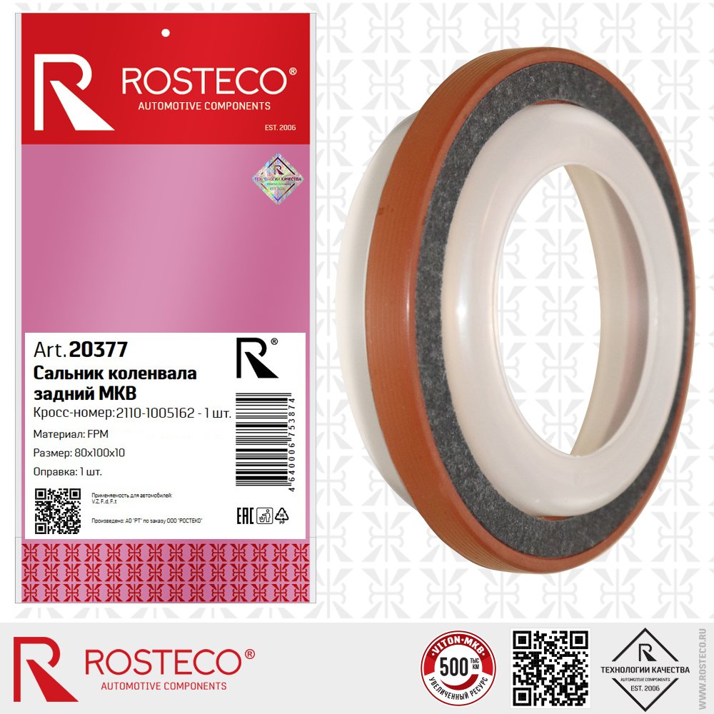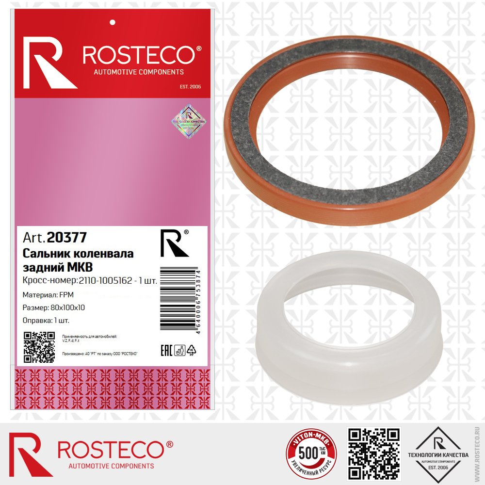 20377 ROSTECO Сальник коленвала для а/м ВАЗ 2108 задний "Rosteco" с фетровым пыльником