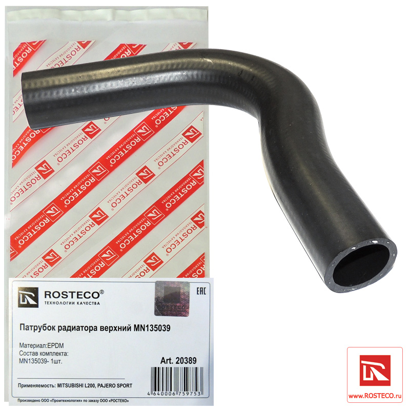 20389 ROSTECO Патрубок радиатора верхний EPDM