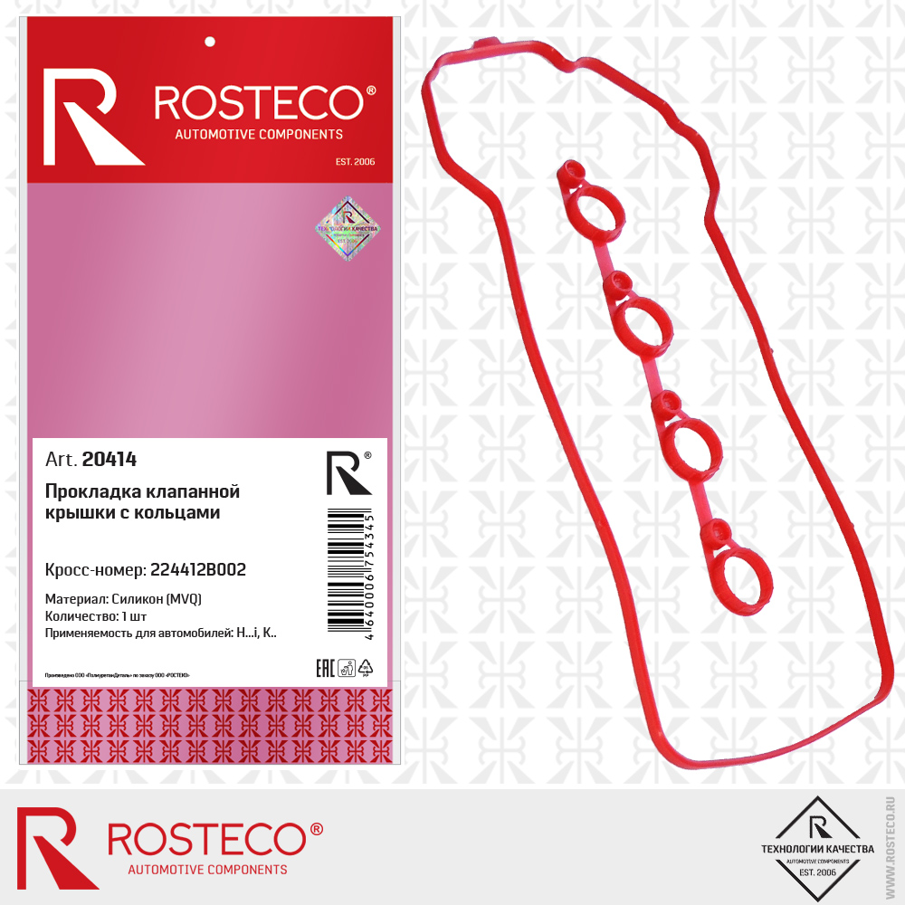 20414 ROSTECO Прокладка клапанной крышки с кольцами силикон