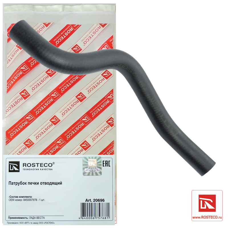 20696 ROSTECO Патрубок отопителя для а/м Lada Vesta (отводящий) Rosteco