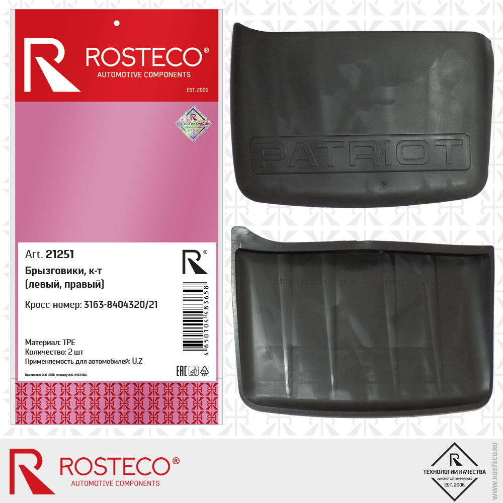 21251 ROSTECO Брызговики задние для а/м УАЗ Патриот (2 шт.) "Rosteco" TPE