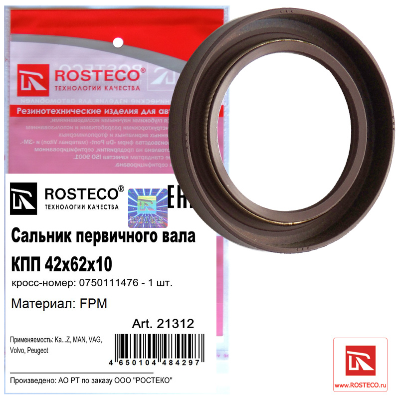 21312 ROSTECO Сальник первичного вала КПП 42х62х10 FPM 21312