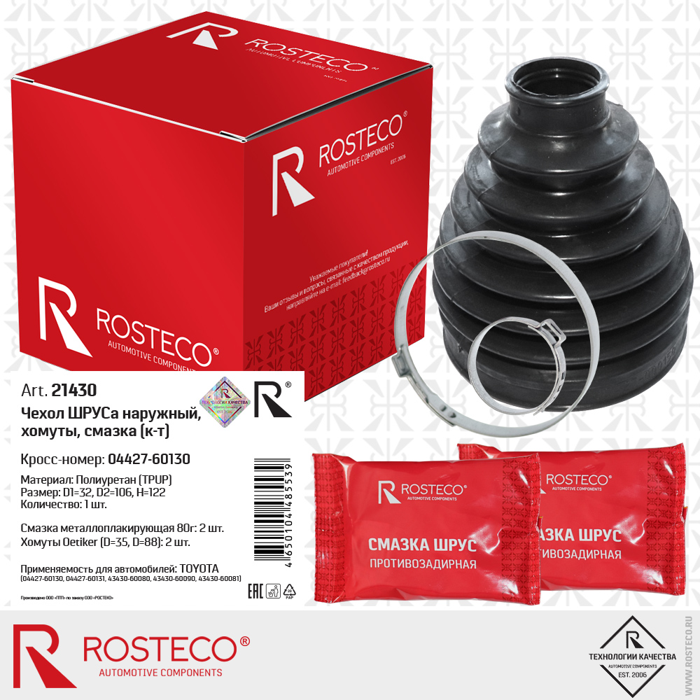 21430 ROSTECO Пыльник ШРУСа наружного +хомуты, смазка