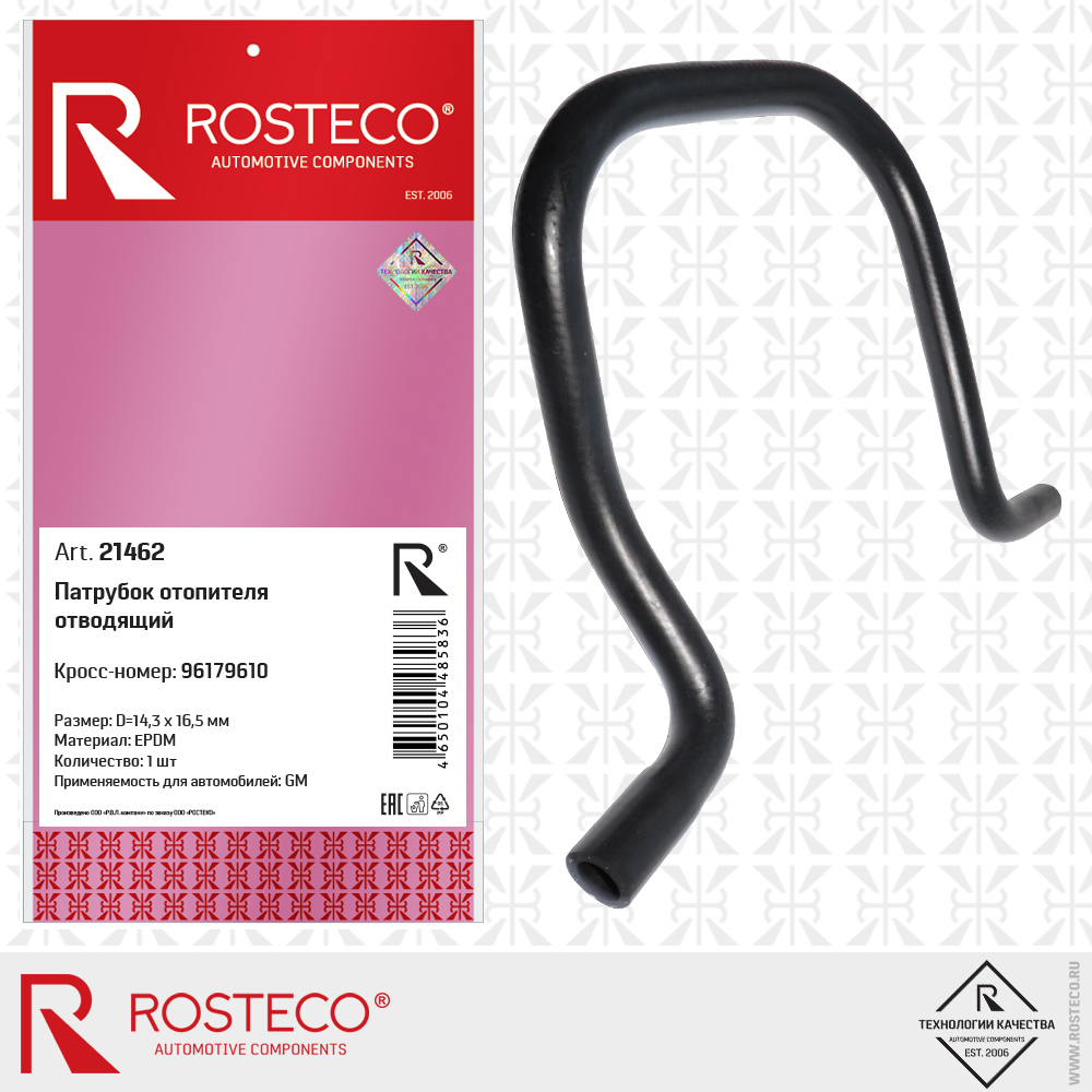 21462 ROSTECO Патрубок отопителя отводящий