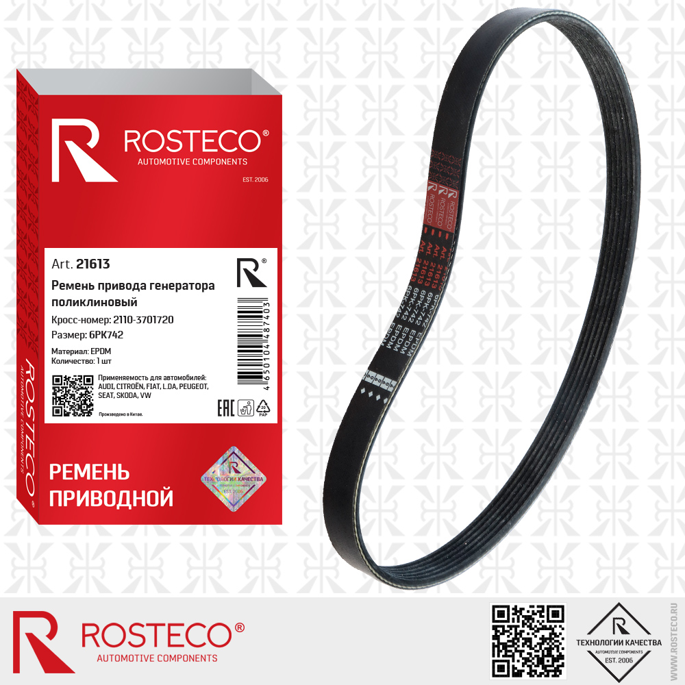 21613 ROSTECO Ремень генератора для а/м ВАЗ 2110/2112/2170 (6PK742) "Rosteco"