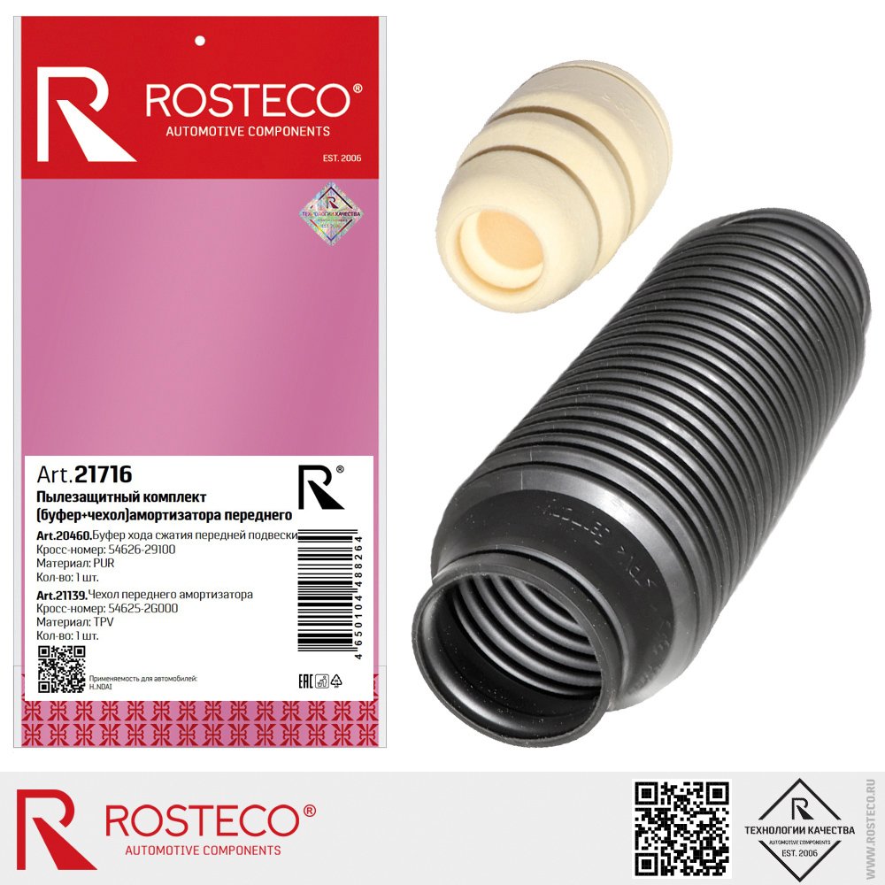 21716 ROSTECO Комплект чехол переднего амортизатора и буфер хода сжатия TP/ пенополиуретан