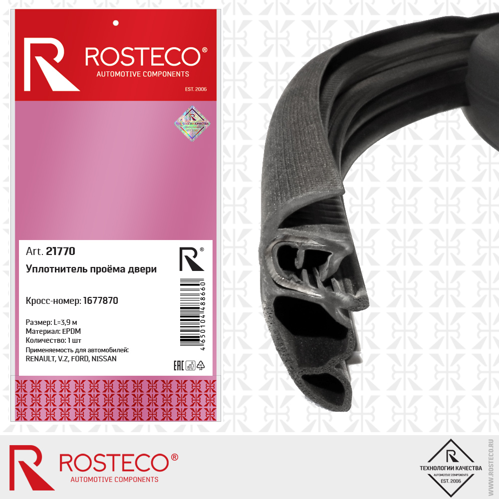 21770 ROSTECO Уплотнитель проёма двери (длина 3,9 м)