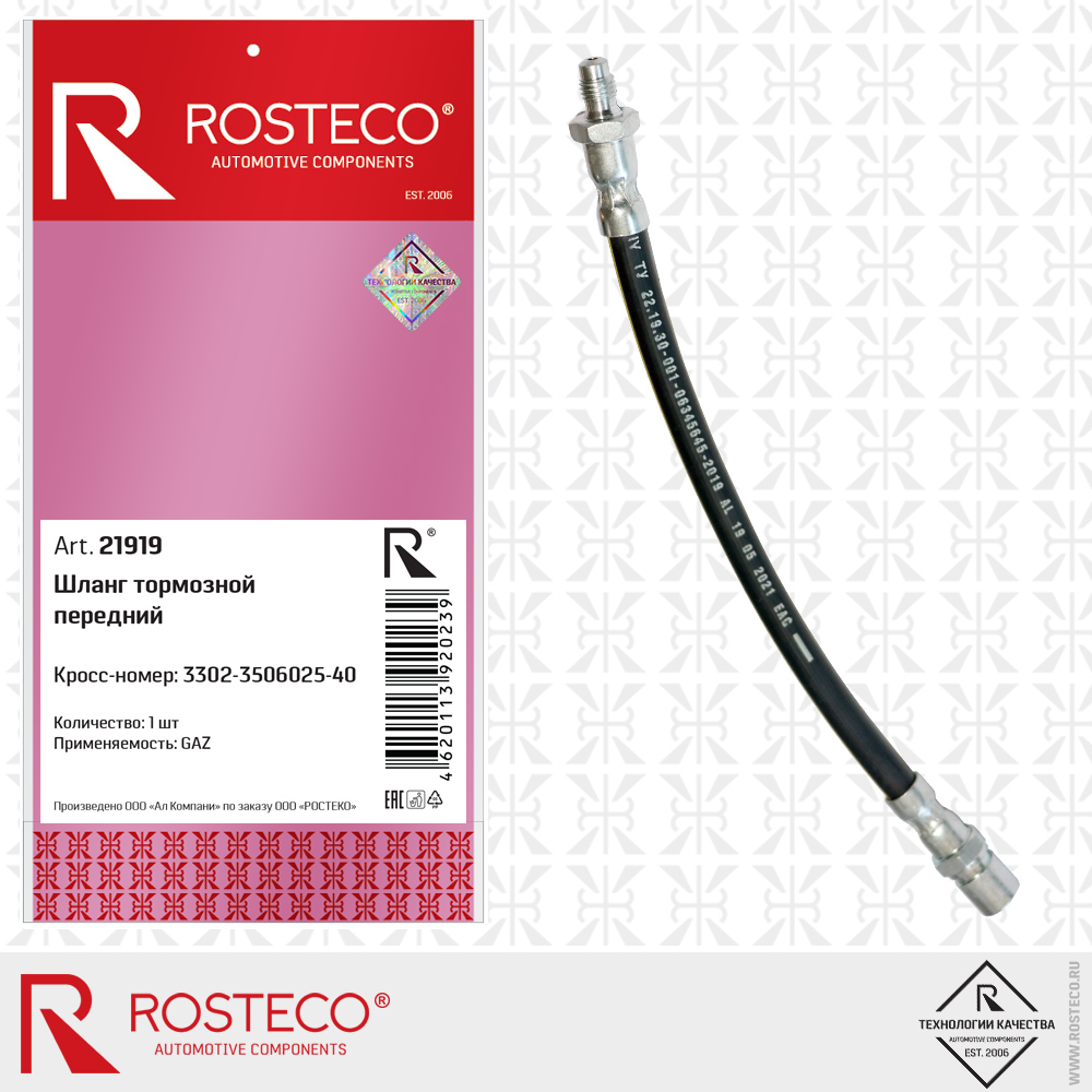 21919 ROSTECO Шланг тормозной передний для а/м ГАЗель Бизнес промежуточный Rosteco