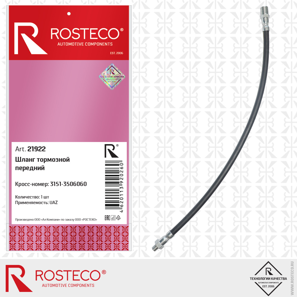 21922 ROSTECO Шланг тормозной передний (52 см) "Rosteco"