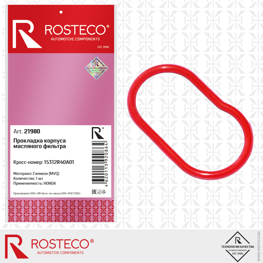 21980 ROSTECO Прокладка масляного фильтра (силикон)
