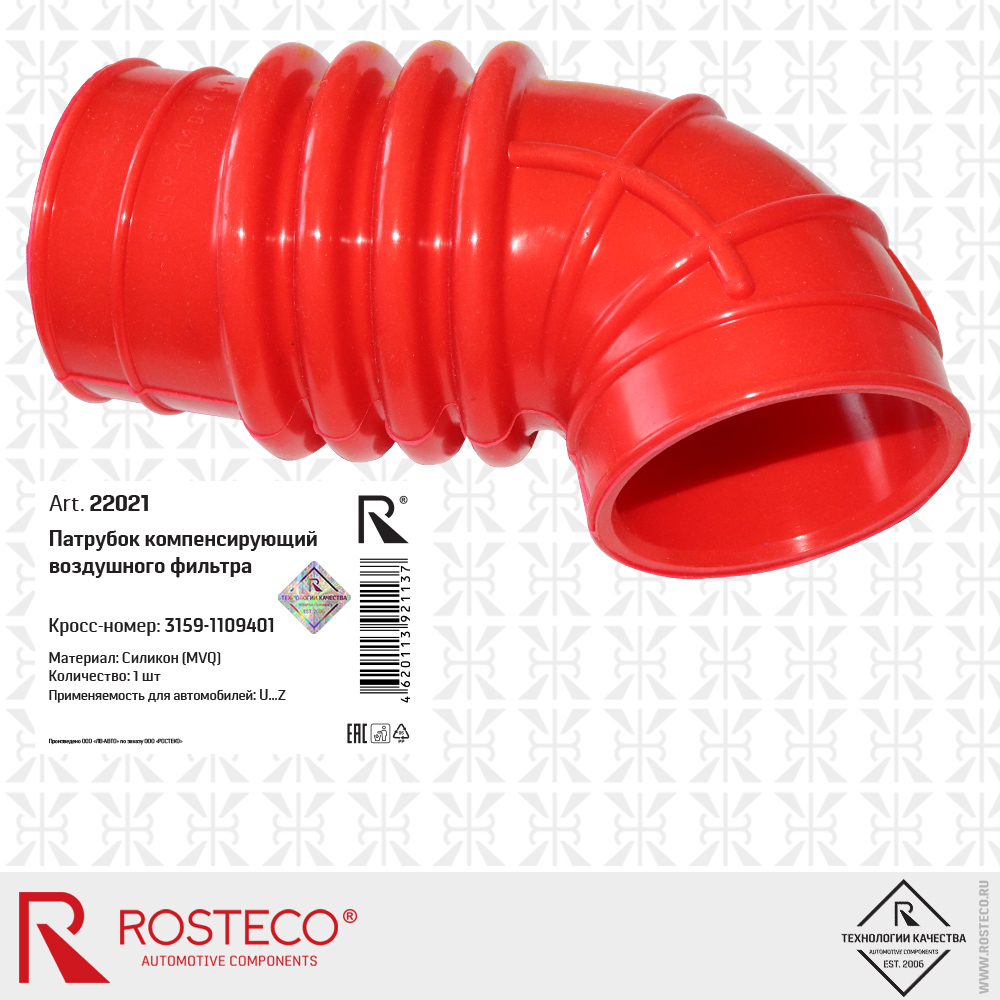 22021 ROSTECO Шланг воздушного фильтра компенсирующий для а/м УАЗ "Хантер"от ДМРВ "Rosteco" MV
