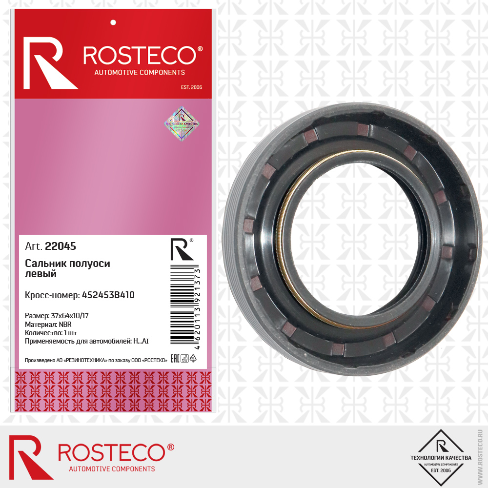 22045 ROSTECO Сальник полуоси левый 37х64х10/17 NBR